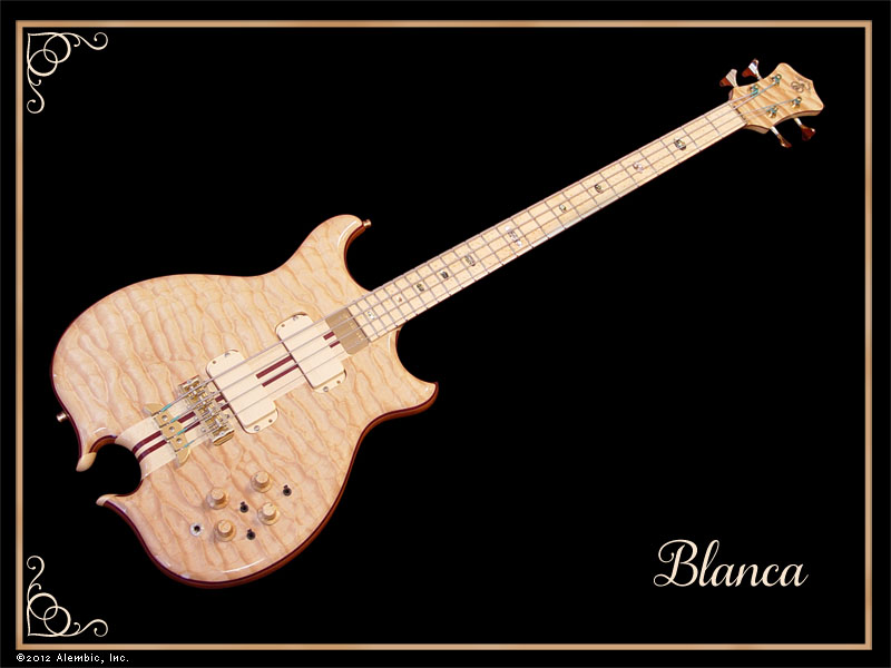 Fast forward a few years, and that ol’ Maple fingerboard popped up again, this time in the form of John Lodge’s Series I bass in Satinwood with a (you guessed it) Maple fingerboard. Another few years of fast forward and Gary saw the Featured Custom Pure Brilliance and that cemented the idea: it was time to place his custom order. After gleaning over the other Featured Customs and the Factory to Custom section of the Alembic Club, all the pieces fell in place and Blanca was ready to take form.