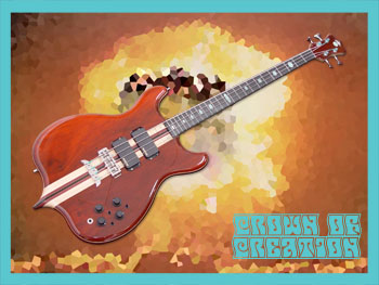Although these instruments are phenomenal and I love them both, I felt that neither one was “just exactly perfect“ for me, so I began to develop a concept for a custom build. I knew I wanted to pay homage to Alembic's formative years along with the instrument (and musician) that initiated my dream, but, beyond that, how would this idea become a finished instrument that also reflects my personality and playing style? To help transform this bunch of random ideas into reality, I scoured the Alembic website, especially the Custom Archive, looking for guidance. The Crown of Creation project was born after a single sleepless night when I was finally able to organize all of my thoughts about woods, colors, finishes, body, and headstock shapes and electronics well enough to contact Alembic.