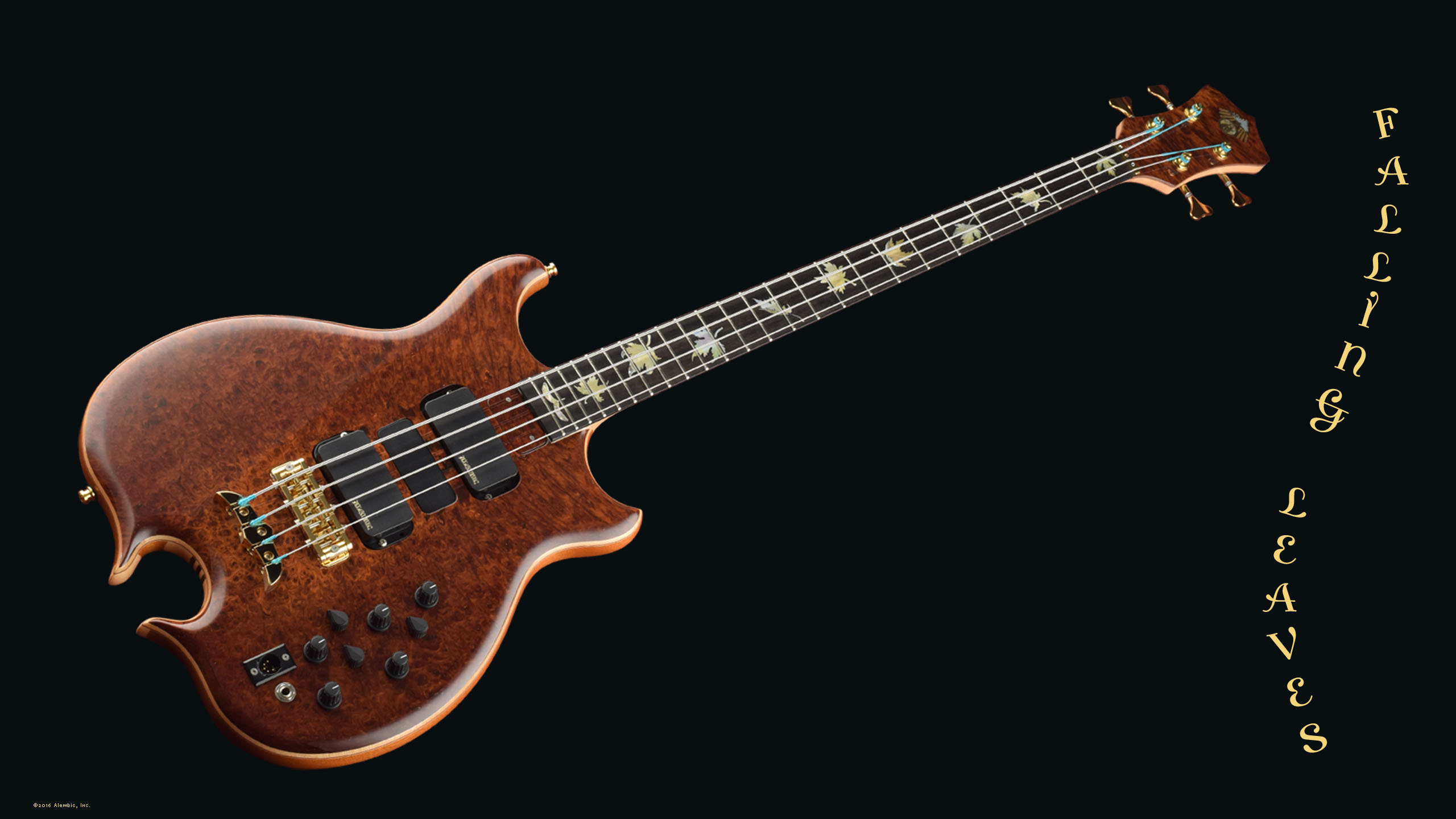 Pierre is certainly not a newcomer to the world of custom Alembic basses starting with his Stanley Clarke Brown Bass to his present project, Falling Leaves. Over the years Pierre and Susan have nurtured a unique relationship when it comes to his customs: he tells her what model, number of strings, wood choice, and a general concept for the inlay design. Then he just waits for the completed instrument. No photos, no mock ups, no changes. He entrusts Susan with total aesthetic control over the specific pieces of wood and design of the inlays, without his overview. He wants the surprise when he opens the case for the first time.