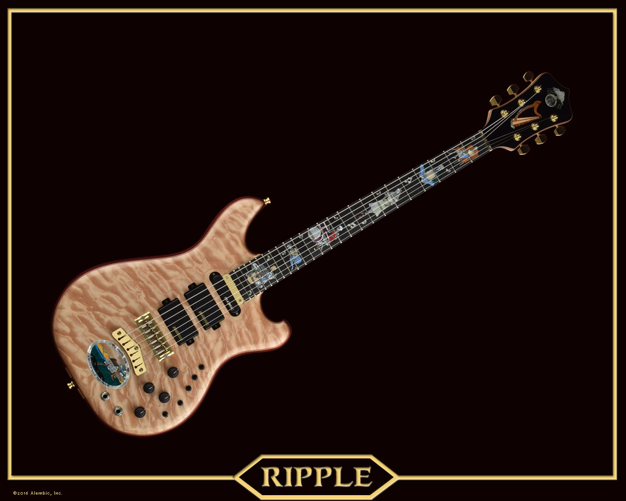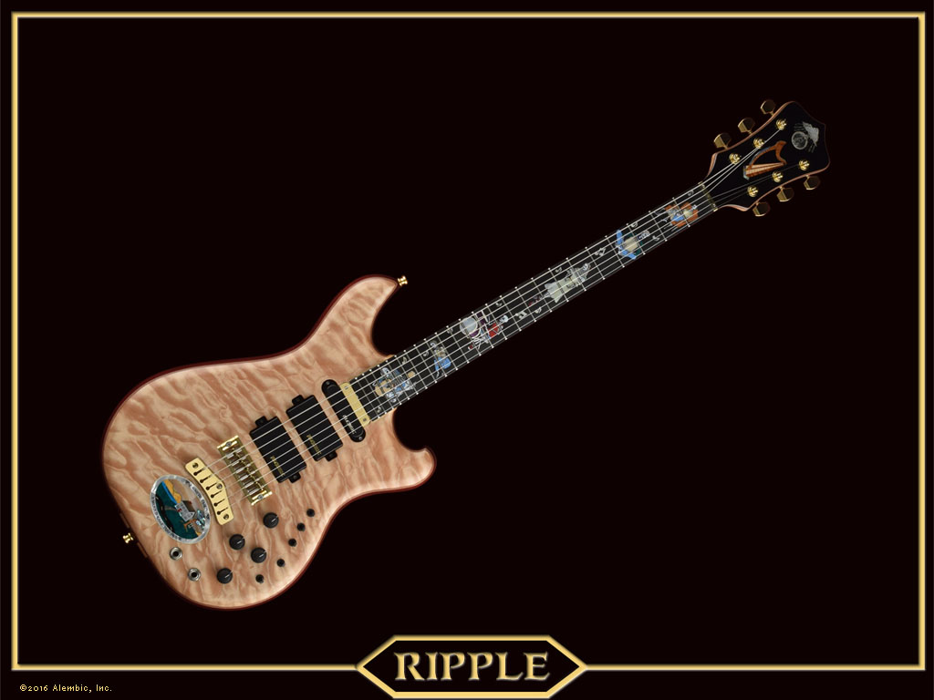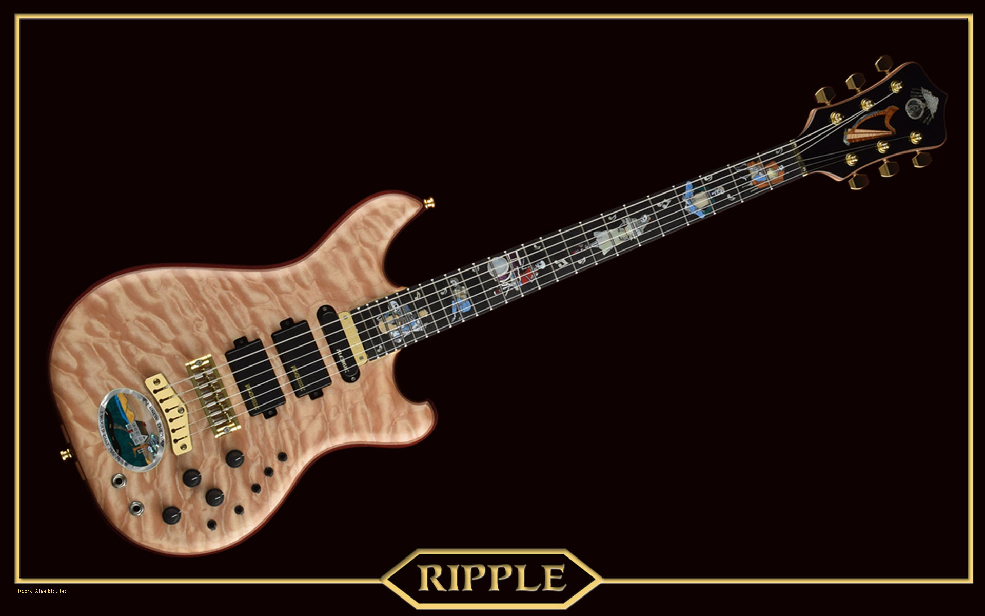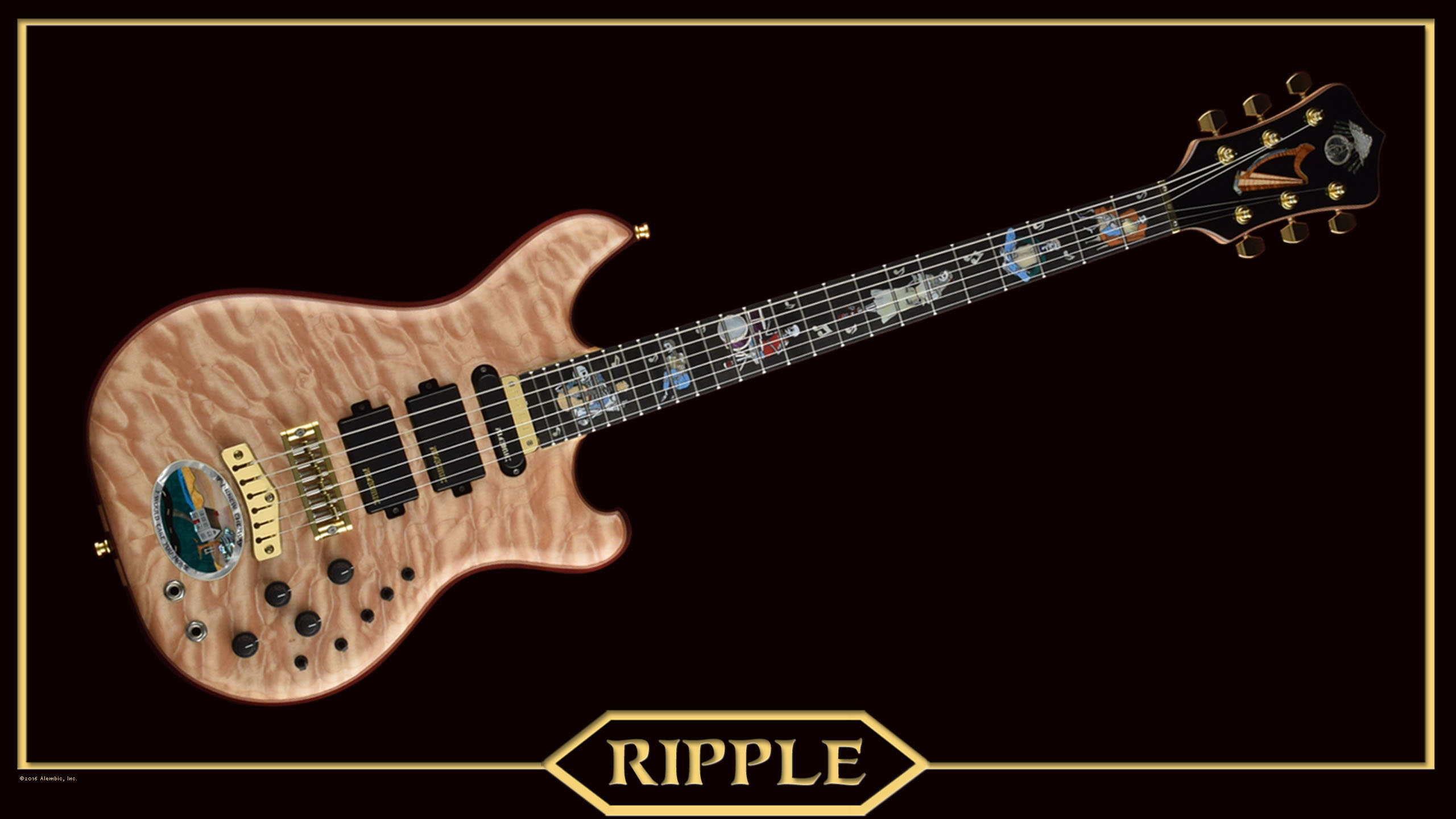 We just love Ripple. Everyone worked so hard to make this dream a reality, and we really miss her! We know we took a lot longer than expected to complete this guitar, and we were glad to learn that Michael felt it was worth the wait, as we lost ourselves in the inlay process. Another report was that the kids love to show their skeleton selves off to their friends.