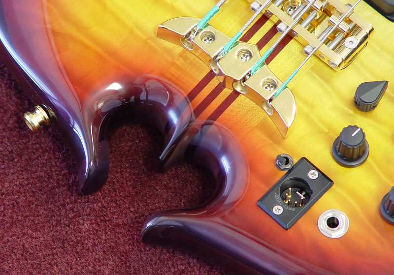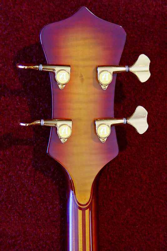 The peghead face veneers are in matching woods, with Quilted Maple on the front and