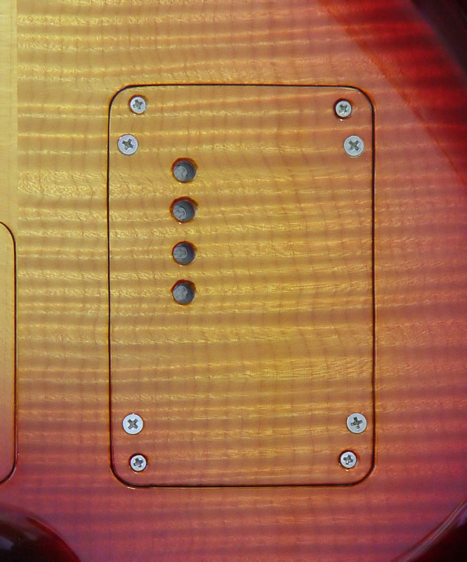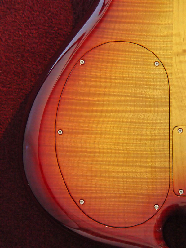 Flame Maple on the back. Note how the Wineburst finish follows the peghead contours.
