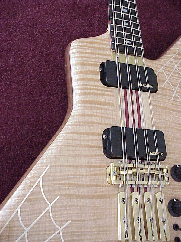 to the uppermost frets. We used the same templates for the body and peghead shapes as we used on some of John's basses, and