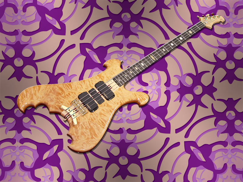 - Mahogany body with Maple and Purpleheart accent pinstripes